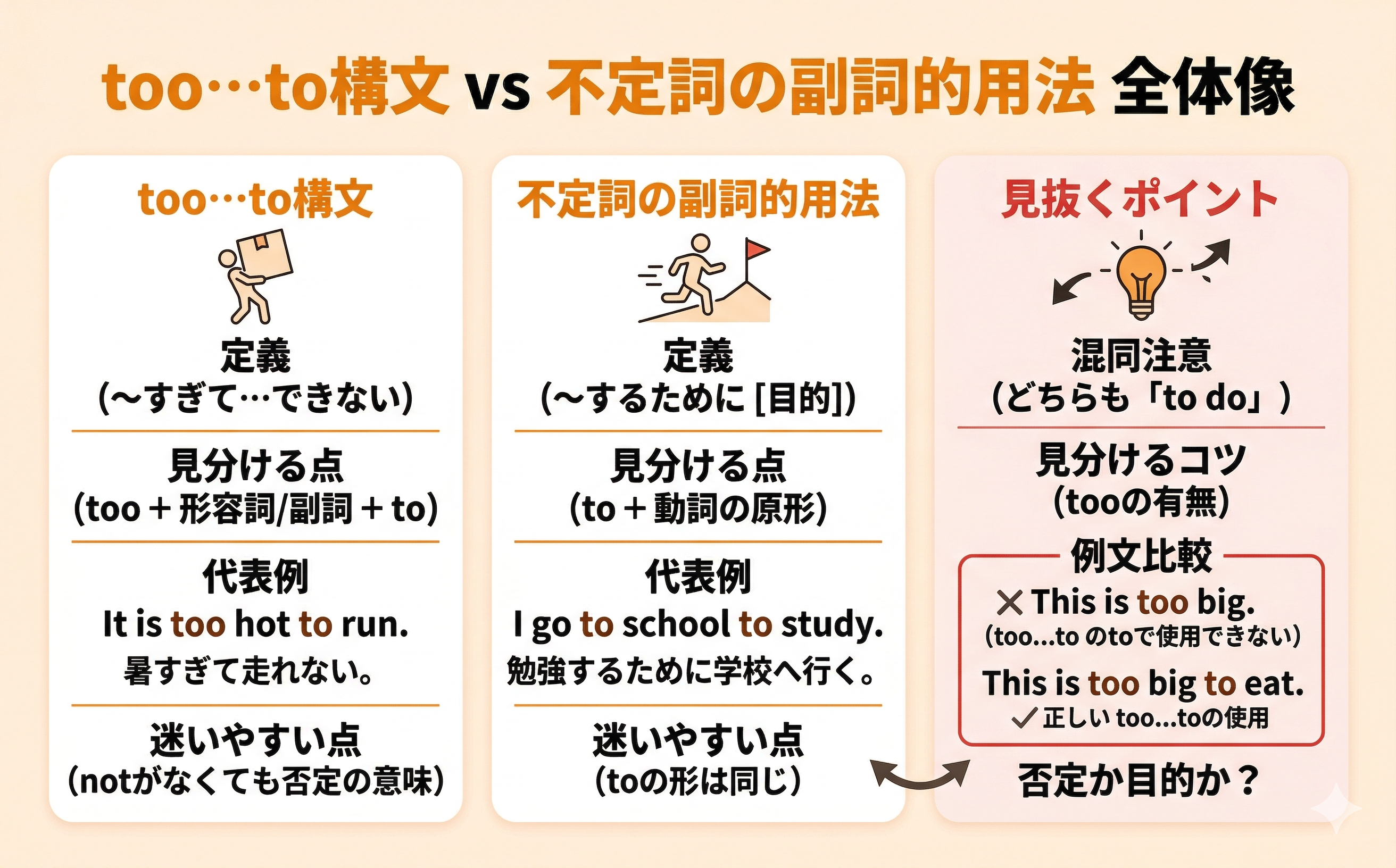 too…to構文と不定詞の副詞的用法【全体像】