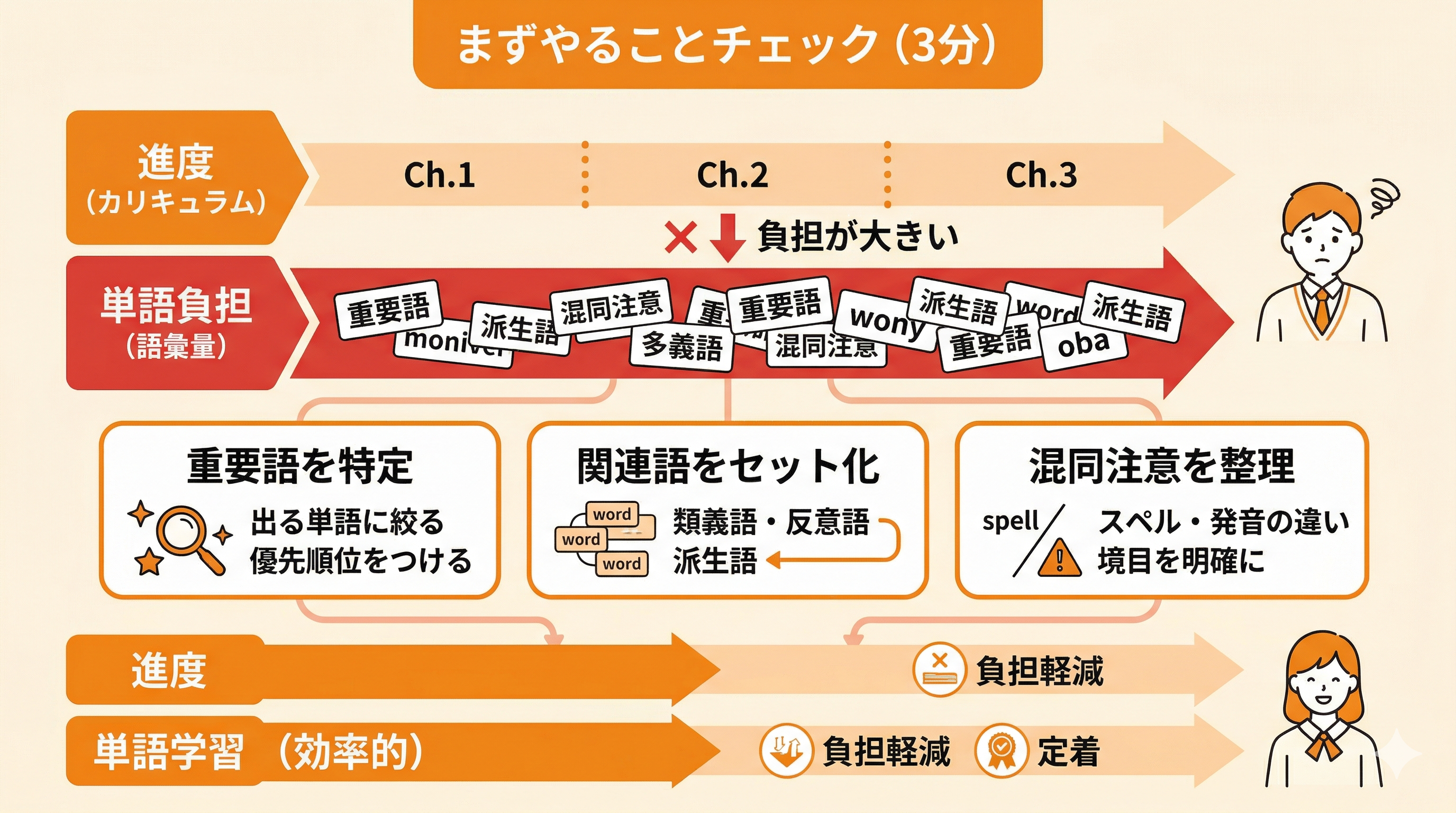 進度が速い、単語が多い、予習が終わらない――この3つが同時に起きやすい教材です。